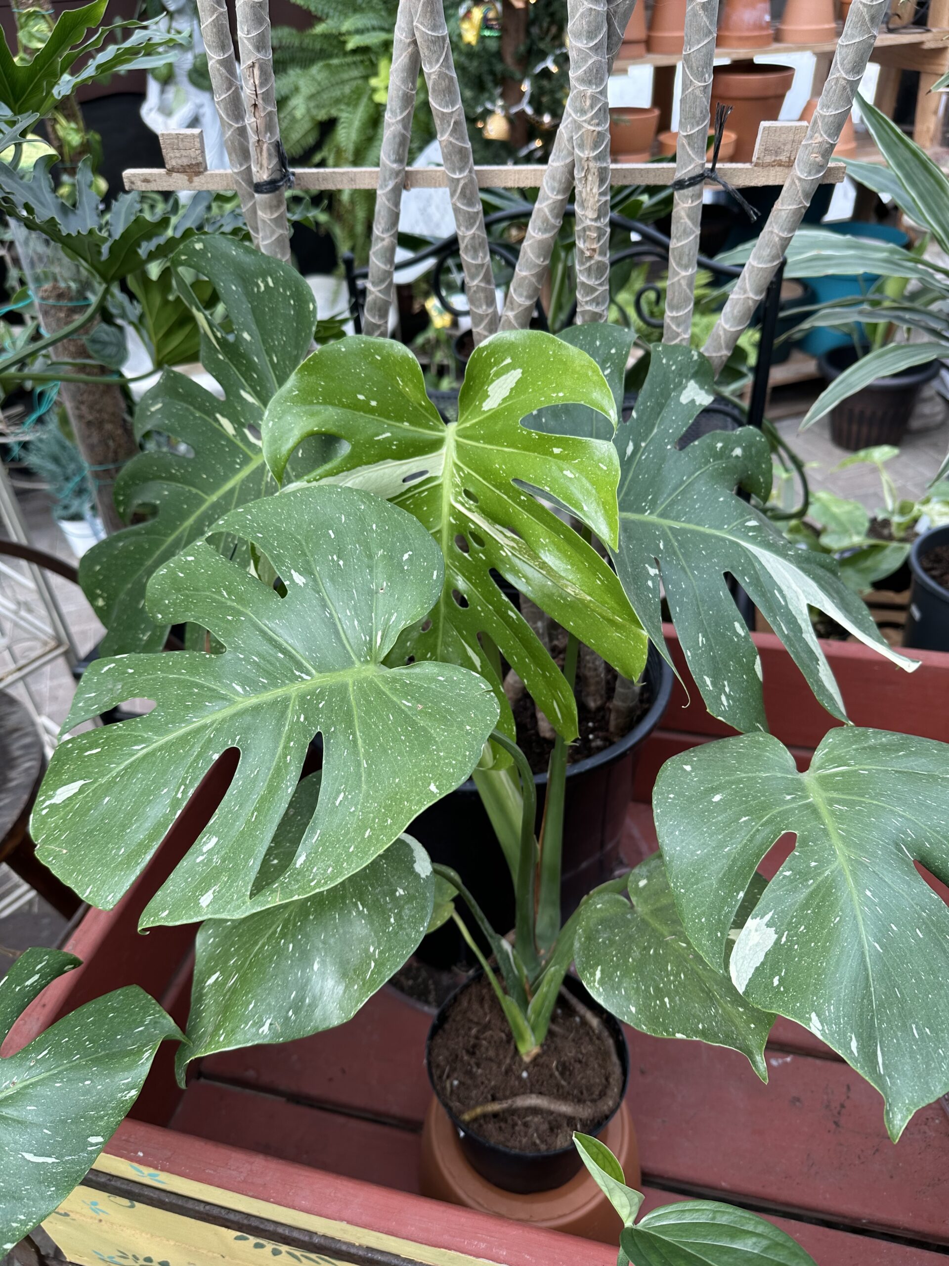 A colorful twist on the traditional monstera this easy care plant is quick to become a household favorite. Tolerating low to bright indirect light, and with large leaves that feature unique splits and holes as they grow,