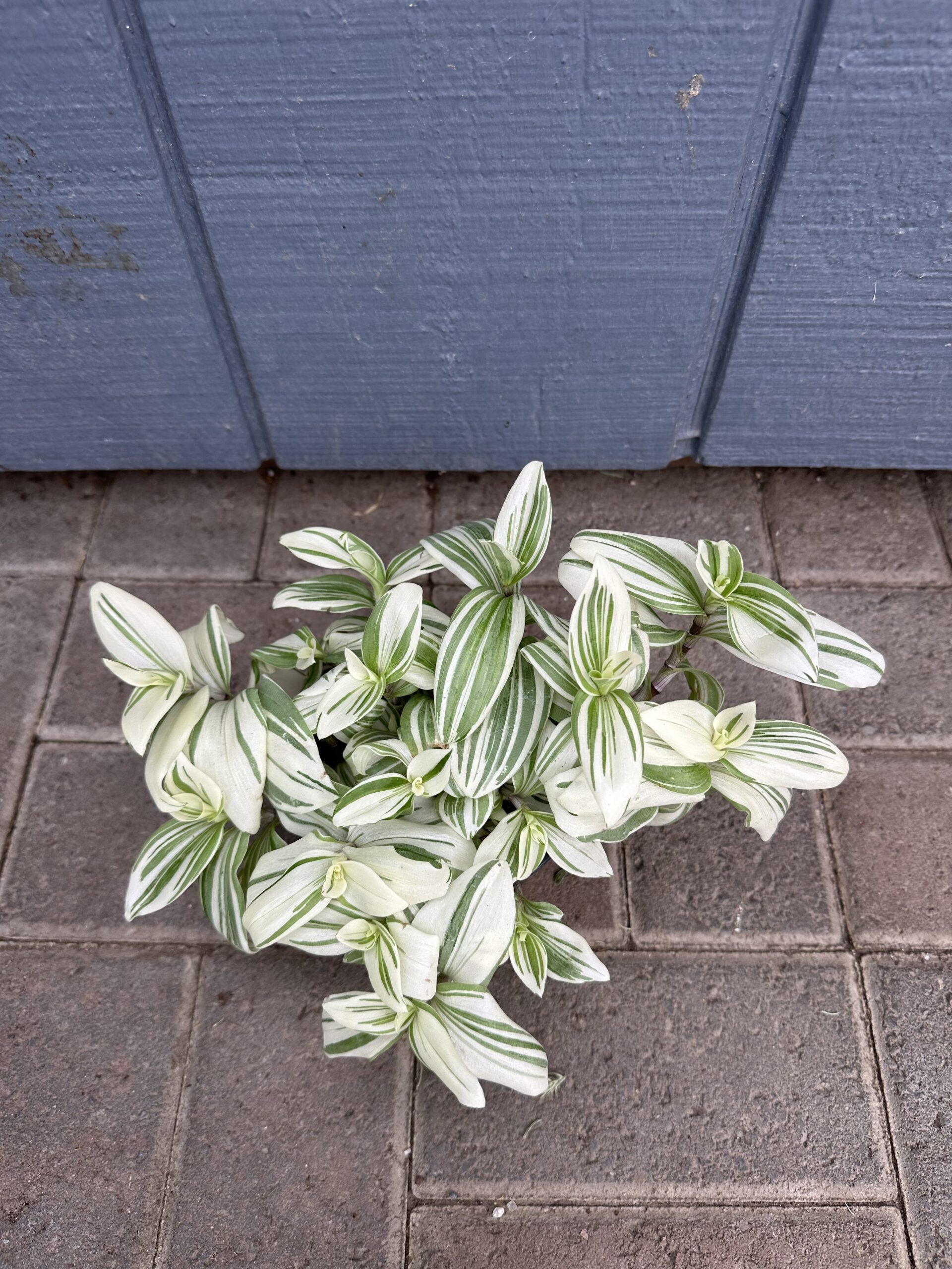 Featuring bright white and pale green striped leaves, this tradescantia cultivar is sure to add style to any space.